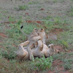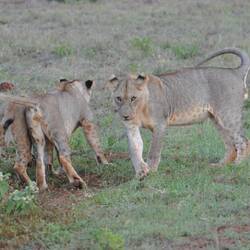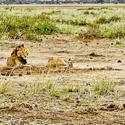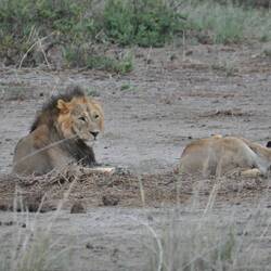 Nach ein paar Minuten im Park kreuzten diese beiden Herrschaften unseren Weg 🥰! Und wenige Kilometer später konnten wir diese „viel beschäftigte“ Löwenpaar beobachten. Jackpot!