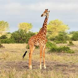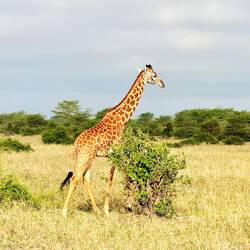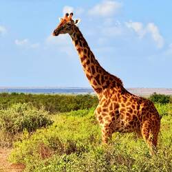 Die Giraffe (Giraffa camelopardalis) ist mit bis zu 6 m Höhe das größte Landtier der Savanne. Sie wiegt zwischen 800 und 1.200 kg und wird 20–25 Jahre alt. Giraffen ernährenLæs mere