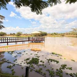 Nach circa 4,5 Stunden kamen wir im ersten Camp an. Einfach herrlich hier! Vor dem Tor zum Amboseli gelegen, wunderschön angelegt. Nur der Kilimandscharo versteckt sich leider noch…