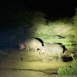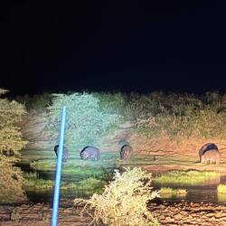 Bei Einbruch der Dunkelheit ging es auf unsere erste Nachtsafari. Ich hatte mir davon eigentlich gar nicht viel erwartet und dann hat sich die Tour als Jackpot entpuppt! Hippos, Elefanten und eineLæs mere