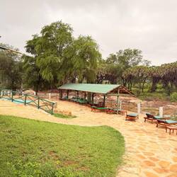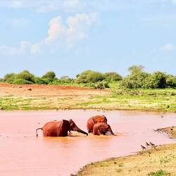 Mittags haben wir in der Voi Wildlife Lodge Rast gemacht - und nein, nicht so, wie die Tourihorden neulich im Camp 😀, sondern ganz zivilisiert, ruhig und nur zu dritt. 😉 Die Lodge liegt amLæs mere