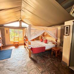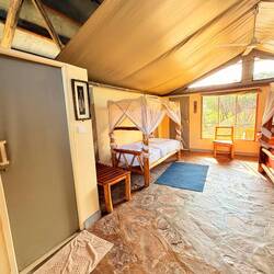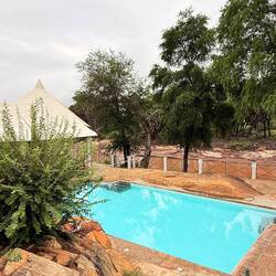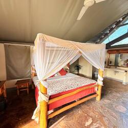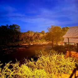 Diese Nacht verbringen wir im Man Eaters Camp. Ich habe bisher nur unser Zelt fotografiert, da es heute so heiß war, dass ich mich nach der langen aber kühlenden Fahrt im offenen Jeep einfach nurLæs mere