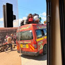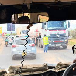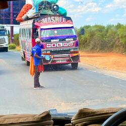 Heute Morgen um 8 Uhr ging’s los auf die letzte Etappe. Auf der Hauptstraße Mombasa - Nairobi braucht man gute Nerven! 😱 Eine zweispurige Straße, die zum Teil von vier Autos nebeneinanderLæs mere