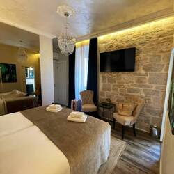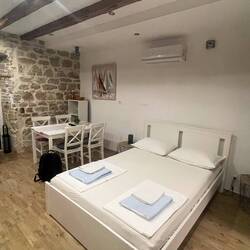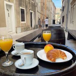 Ein Traum! Unter den Zimmern ist eine Kanobe, total urig, gestern Abend gab es dort kroatischen Gesang von Gästen, es ist immer was los, aber nicht laut. Total entspannt und lauschig in der Gasse zuLæs mere