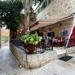 Ein Traum! Unter den Zimmern ist eine Kanobe, total urig, gestern Abend gab es dort kroatischen Gesang von Gästen, es ist immer was los, aber nicht laut. Total entspannt und lauschig in der Gasse zuBaca lagi