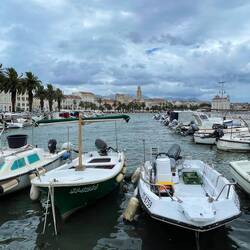 Morningwalk zum Hafen, eigentlich wollten wir um 8.30 nach Hvar fahren, aber die Fähre geht nicht wegen des Wetters. Die einzige Alternative wäre ein Katamaran gewesen, der fährt aber erst um 17Baca lagi
