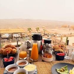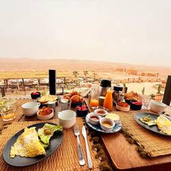 Schlafen unter freiem Himmel in der Wüste 😍. Leider ist es gerade sehr bewölkt, wir wollten eigentlich noch am Pool chillen… Das Wetter ärgert uns ein bisschen. Wenn wir fahren mussten war esLæs mere