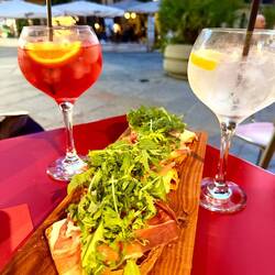 Dinner im Pomata Bistrot. Es gehört zum bekannten Da Nicolo, samt Michelin Stern, uns war aber nach all dem Fisch und den Muscheln mal nach ner Pizza. Köstlich!