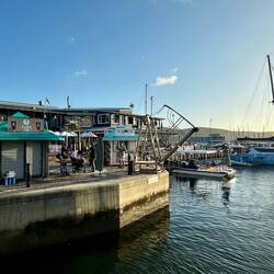 Am Abend stürzen wir uns nach drei Tagen im Outback mal wieder ins Getümmel… Waterfront in Knysna. Shops und Restaurants 😀