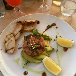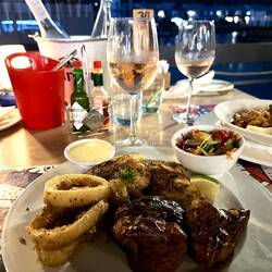 Nach diesem herrlichen Faulenztag haben wir wieder ein köstliches Abendessen genossen. (Man sieht mir meinen Schlaf- und Dösmodus auch beim Aperitivo noch an! 😀🤷♀️)