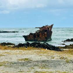 Am letzten Tag unseres „Afrika-Jahres“ haben wir den südlichsten Punkt des Kontinents erreicht. Just als wir ankamen, fing es an zu regnen 😀🤷♀️.