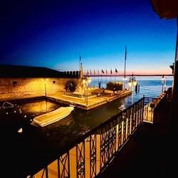 Als wir am Hafen ankamen, empfing uns Lazise in den schönsten Farben des Abends 😍