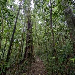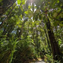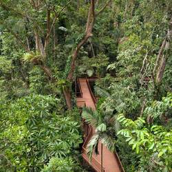 Hier kann man auf einem Boardwalk, der teilweise erhöht liegt, durch den Regenwald schlendern.