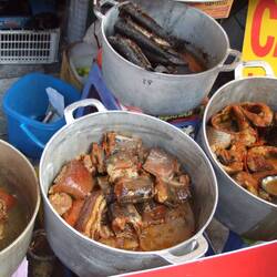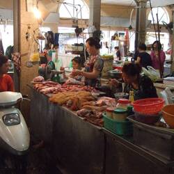 Auf einem kleinen Markt ganz in der Nähe gibt es alles für das Mittagessen. Derweil stehen sich die wartenden Massen weiterhin die Beine in den Bauch.....