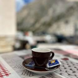 Das feudale Frühstück im 🚆 war eigentlich fürn 🍑. Also, ging es ohne was im Magen, außer Kaffee ☕️ auf die Fahrt nach Colfosco in den Dolomiten ⛰️. Die 295 km waren dann nach 7 hLeia mais