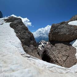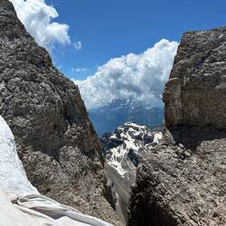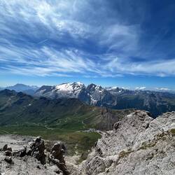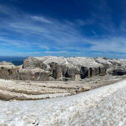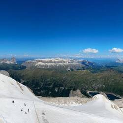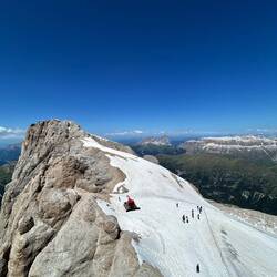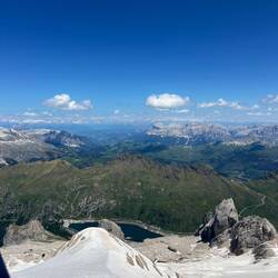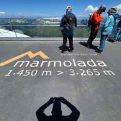 Heute ist mein letzter Tag in den Dolomiten und ich wollte noch mal ganz hoch hinaus. Die Marmolada ist, ich weiß es nicht genau, der höchste Punkt, den man dort mit einer Seilbahn 🚠 erreichenLeia mais