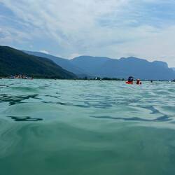 Die Route ging Gottseidank zum Kalterer See. Die Temperaturen, waren laut Anzeige bei 32°C. Der See kam wieLeia mais