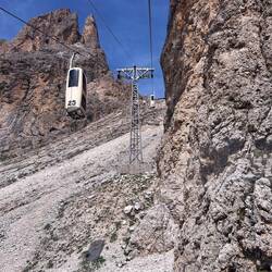 Hoch gehts mit einer der letzten Korbseilbahnen zum Langkofel. Das dortige Rifugio liegt auf 2685 Metern. Dort oben ist ein Kletterpark und von dort aus, sind weitere Wanderungen möglich.