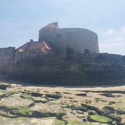 On our bikes up and over hills on rough tracks for the first sight of the sea since we began our trip. Was very surprised. It was a lovely beach with rock pools and very small mussels. Mark managed toRead more