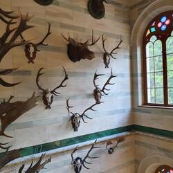 Wir besichtigen das Jagdschloss Granitz, das auf einem bewaldeten Berg bei Binz liegt. Rauf zum Schloss geht es mit dem Jagdschloss-Express. Einst der luxuriös ausgestattete Jagdsitz der PutbuserLæs mere