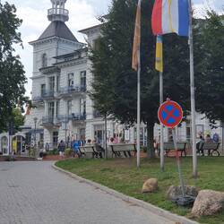 Ich bin mit der Familie meiner Tante auf Usedom. Als erstes besuchen wir das Seebad Ahlbeck. Bei einer Fahrt mit dem dortigen Riesenrad haben wir einen guten Ausblick auf das Seebad.