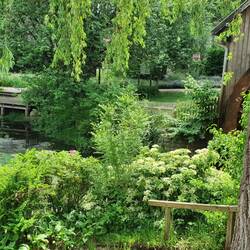 Nach einem so heißen Tag mit Schifffahrt und kurzer Abkühlung im Freibad nun glücklicherweise auf einem Hof ein nettes schattiges Plätzchen gefunden.