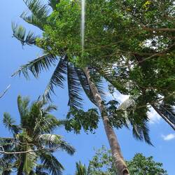 Bem z‘Morge met Ussecht uf‘s Meer und e schöni Felseinsle, eröffnet euse eine vo de Underkunft, dass mer höt ines anders Bungalow, vore am Strand döfe umzieh. Gester heigi si üsi Buechig, wells so spot gsi esch, ned em Compi aglueget und eus drum ines normals Bungalow brocht. Heissa!
