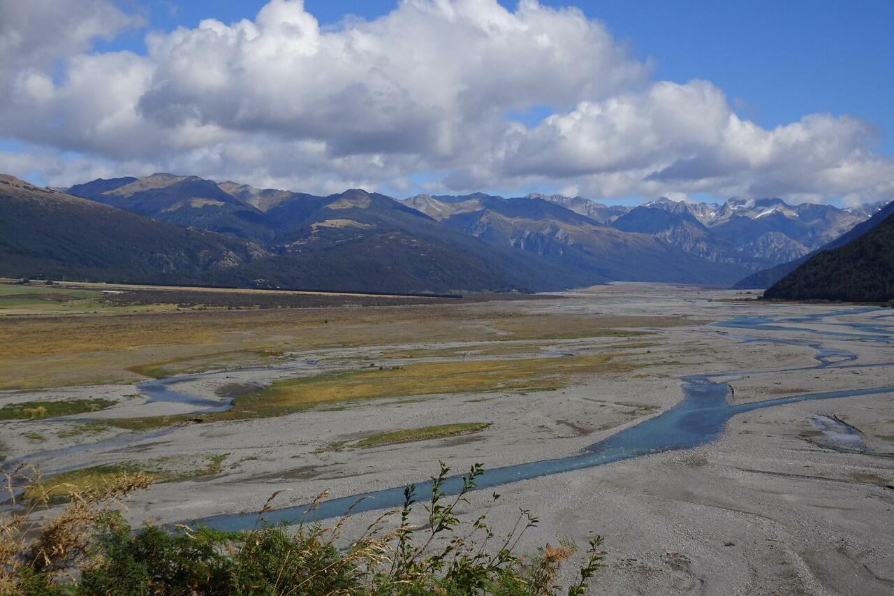D’Landschaft ume Arthurs Pass, mit Berge Flusstäler und Hügellandschafte esch hammer schön!
