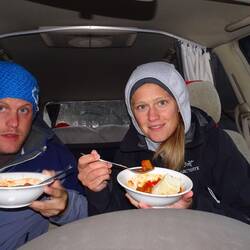 Zum Glück hämmer höt underwegs e Fleecedecki und e Bettfläsche kauft. Es esch mega chalt sobald d‘Sunne dunde esch.