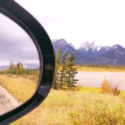 Auf dem Weg war Bella schon richtig aufgeregt. Ich zwar auch, aber ich war doch längst nicht so ungeduldig.😅 Der Weg zog sich, doch die Landschaft rechts und links der Straßen war schön anzusehen. Viele orangene Bäume erstrahlten in der Sonne, die den Herbst von seiner schönsten Seite zeigten. So fuhren wir einige Zeit. Achso. Habe ich euch schon meine Chauffeurin vorgestellt? Sie heißt Meghan (ausgesprochen eher Määäiiiigäääähhn) und ist total diszipliniert, viel weniger verwirrt als Bella, clever und eine gute Autofahrerin. Was eine Brille so alles bewirken kann!😂 Als wir schließlich die ersten mächtigen Berge am Horizont aufblitzen sahen, waren wir ein klein wenig am Durchdrehen. Endlich kamen wir der Sache näher! 😊 Wir suchten uns den passenden Soundtrack heraus und genossen den Augenblick. Je näher wir kamen, desto krasser wurde es. Wir hatten schon vor dem ersten Bild wirklich viele Fotos gemacht, aber seit wir in den Nationalpark reingefahren waren, wussten wir, dass diese Bilder einfach nur noch scheißdreckstotal egal sein würden. Das was uns hier erwartete, damit rechnet man irgendwie, aber man kann es dann doch nicht fassen, wenn man es wirklich vor sich sieht. Jeder hat die Bilder aus den Parks schonmal gesehen, aber wirklich da zu sein. Booooaaah! Das ist schon ganz schön krass. Wir waren auch wirklich einfach nur noch am Ausrasten. Alle 100 Meter MUSSTEN wir einfach anhalten, um Fotos zu machen. Da führte kein Weg dran vorbei. Berg hier, Wasser da, Bäume dort. Oh mein Gott, noch ein Berg! Waaaahhh, zwei auf einmal! Ooooaah, der See! Krass, die Faaaarben! WOW! Bis wir in Jasper angekommen waren, hat es so lange gedauert, obwohl es von der Grenze des Parks bis zu dem kleinen Örtchen gerademal knappe 50 Kilometer sind. Wir mussten uns auch irgendwann eine Skala einfallen lassen, um nicht mehr überall anzuhalten und mentale Purzelbäume zu schlagen. 7 ist langsamer fahren, 8 ist anhalten, 9 ist anhalten und aussteigen und 10 ist die völlige Eskalation. Gerade als wir dieses Schema für unsere Weiterfahrt festgelegt hatten, brüllte Bella „10! 10!“, denn da standen plötzlich Rehe und ein Hirsch am Straßenrand. Ich glaube, ich habe noch nie zuvor einen Hirsch in Realität gesehen…außerhalb von Zoos oder so. Und auch die Rehe wirkten größer, als die, die ich kannte. Den muss es hier wirklich gut gehen! Toll toll toll!😊 Wir waren wirklich heilfroh, als wir schließlich in Jasper ankamen. Dort war zwar noch nicht unser Hostel, doch wir brauchten dringend einen Zwischenstopp, um unsere Nerven wieder unter Kontrolle zu kriegen. So viel Input, so viel Schönheit und Perfektion in so kurzer Zeit. Das war ganz schön viel für uns. Vor Schreck habe ich nicht nur ein, sondern gleich zwei Bier hintergekippt. Uff!