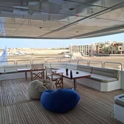 Wo mir in Port Ghalib achöme geits zersch mau ad Tankstell zum z Boot wider voll z tanke während däm mir Zmittag ässe. Denn lege mir wider im Hafe a und nach em Abrächne chöi mir z erst mau sitLeggi altro