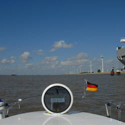 Vychádzame na more. Ak sa to tak dá nazvať možno 100km dlhý záliv Severného mora. Plávame proti prílivu a je to cítiť. Spotreba nám stúpa na dvojnásobok, ale čakať na odliv pre nás nebolo akceptovateľné. Podľa jednej lode, ktorú sme stretli ešte v Aurichu im práve plavba proti prílivu takto zabrala celý deň. My však približne za 2 hodiny už vplávame do kanálu holandského mesta Delfzijl.