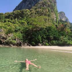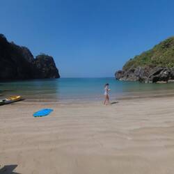 Cestu lemujú vysoké útesy a po nejakom čase sa pred nami otvára malá krásna pláž, ktorú okrem nás okupuje len jeden kajak,aj ten neskôr odchádza.