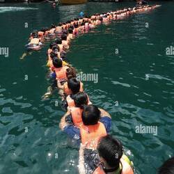 P.S. Posledný obrázok je len pre ilustráciu stiahnuté z internetu, lebo by mi pripadalo neetické ich fotiť - aby ste videli, o čom hovorím. Vpredu sa držia záchranného kolesa a to ťahá vedúci. A vedzte, že sa tu zďaleka nejedná len o čínske posádky, ktoré sú svojim "safety first" (kúpem sa v 30cm vode v záchrannej veste) známe po celom svete...Baca lagi