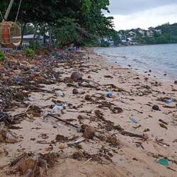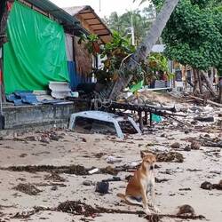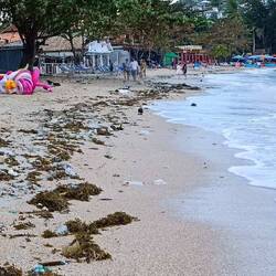 Trošku ráno a neskôr poobede pobeháme po nejakých plážach a je to katastrofa, taký bordel na plážach sme nevideli ešte nikde v Thajsku. Množstvá naplaveného bordelu. Idete si beachwalking a občas pred nejakým rezortom z tej pláže bordel pohrabú a potom zas idete ďalšie dva rezorty, kde je to šialené.