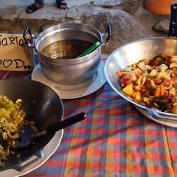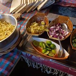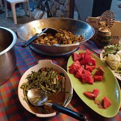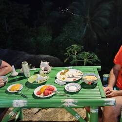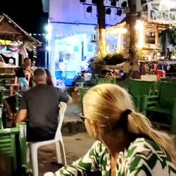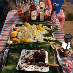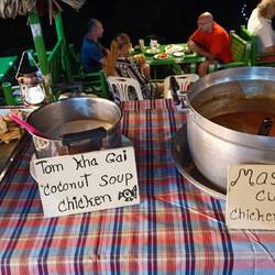 Večer končíme v miestnej reštaurácii, kde pravdepodobne majiteľka oslavuje narodeniny. Je tam kopa jedla a všetko je zadarmo - alebo teda inak, za dobrovoľný príspevok. Skúšame všetko možné. Súčasťou je, že sa thajci zabávajú, predvádzajú svoje thajské "medveďku daj labku" tance a spievajú.