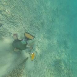 Celý deň sa zas potápame. Máme masky, s ktorými vydržíme byť pod vodou aj hodinu a odvážime sa stále ďalej a ďalej. Pod vodou už sú to zaujímavé výhľady nie len čo sa týka rýb a že ich je kvantum, ale aj skál a rôznych priekop a prepadlín. Je to paráda. Na niektorých miestach je už rybičiek nespočítateľne. Mám pocit, že keď sme boli v morskom akváriu v Singapure, že tam bola hustota rýb menšia ako tu v mori. V tomto je Tao naozaj raj na zemi. Poobede navyše vyrážame na pláž, ktorá je blízko k žraločiemu ostrovu, kde je najväčší výskyt žralokov a morských korytnačiek. Konečne si všetci môžeme odfajknúť, že sme sa potápali povedľa žralokov a každý nejakého videl. Na korytnačku sme však šťastie nemali. V tejto časti sú navyše aj niektoré koraly iné.