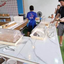 Keď konečne zastavujeme na prvom šnorchlovacom bode, vonku zas... leje... Platí známa pravda, že počas dažďa je najlepšie sa ísť potápať. Po potápaní sa však vyloďujeme na premoknutom "paradise" na obed. Sedíme na mokrých laviciach a na hlavy nám zas... kapčí...
