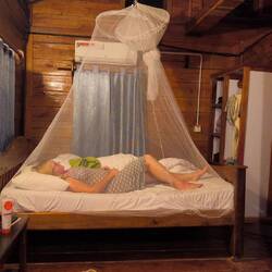 P.S. Zopár detailov vo fotkách, ako nám odhníva, hrdzavie domček, niečo si už prekusalo dieru do strechy a akú máme parádnu elektroinštaláciu... A ako sme si museli nainštalovať vlastnú moskytiéru a pôvodná visí nad ňou, lebo Danka povedala, že pod pôvodnou (nevyzerala lákavo) spať určite nebude :)