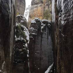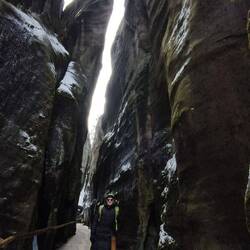 Dnes bol hlavný program okruh po Adrpašských skalách. Nikto sa nerozbil, aj keď nám bolo odporúčané zobrať si protišmykové mačky, čo sme samozrejme odignorovali (keďže nemáme).