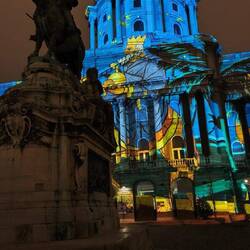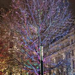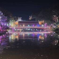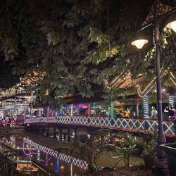 Krásne vysvietené okolie rieky, nasvetlená každá budova, premávka vyzdobených lodí hustá ako v Benátkach.