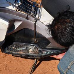 Takže karma za to, že sme si nepožičali motorku z rezortu za 19$ na deň, ale zjednali sme si vlastnú na ulici za 10$ nás dobehla.