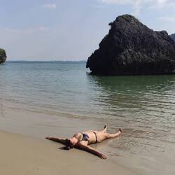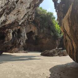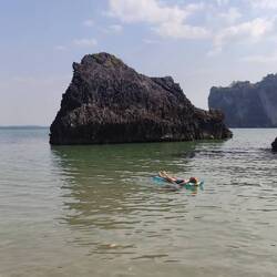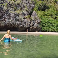 Poobede sa vyberieme na krásnu pláž, ktorá je však príznačná tým, že sa na ňu dá dostať len z vody.