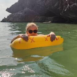 Takže nafúkať nafukovačky a 5 tuleňov ide na výlet. Po dosť náročnom plávaní nás čaká panenská pláž, na ktorej sme úplne sami.