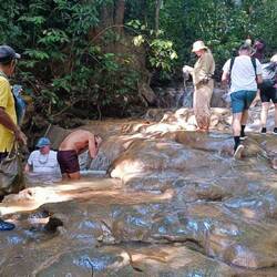 Ďalší výlet loďou smeruje do zátoky, kde vraj máme ísť nejaký 2km výlet (pohodička nie?) na nejaký vodopád s nejakými kaskádami. Chápeme to tak, že vyjdeme prvých 200m a uvidímeBaca lagi