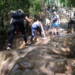 Ďalší výlet loďou smeruje do zátoky, kde vraj máme ísť nejaký 2km výlet (pohodička nie?) na nejaký vodopád s nejakými kaskádami. Chápeme to tak, že vyjdeme prvých 200m a uvidímeLeia mais