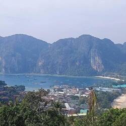 S Dankou sme dnes vyšlapali na 2 vyhliadkové body, z ktorých krásne vidno dve hlavné pláže (a medzi nimi centrum) ostrovu Phi Phi Don. Je to náročné stúpanie po stovkách schodov, ale stojí to za to.