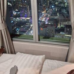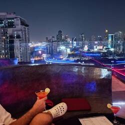 Neskôr večer, posledný deň nášho pobytu zisťujeme, že keďže mám tie narodeniny dostali sme aj pozvánku na zadarmo drink do "Panorama Sky baru".