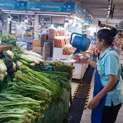 V rámci toho, že si chceme domov doniesť nejaké maličkosti a dobroty navštevujeme najprv veľký farmársky trh. Objavujeme a chutnáme ovocia, ktoré sme za roky v Thajsku ešte vôbec nejedli. Celé to má navyše takú menej turistickú atmosféru, čo je len plus.