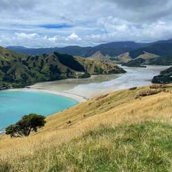 Heute Mittag bin ich zur Cable Bay nördlich von Nelson gefahren. Die Bucht liegt zwischen dem Festland, Pepin Island und dem Damm, der zur Insel führt. Dort habe ich eine kleine Wanderung auf den 240m hohen Hügel gemacht. Dazu musste ich durch eine Kuhherde und dann immer bergauf. Von oben hatte ich einen wunderbaren Blick über die Bucht, Pepin Island und die steile Küste. Danach bin ich dann wieder runter und war in der Bucht baden und habe noch etwas am Strand entspannt.